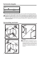 1xB 2xC 596 1xA 5 55 x ma 1xK 18xI 2xG 2xL + - 2xF - 2xD 3 1 1. Installation kit 2. Two cabinet securing brackets (D) are supplied with the installation pack. They need to be assembled onto the cabinet prior to cabinet being pushed into the Kitchen aperture. 2 Left hand bracket 3. Push the appliance into place. The plug socket necessary for connection of the appliance to the electricity supply should be positioned, so that the plug is not placed in the recess.
