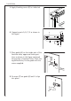Installation 9. Open the appliance door and the furniture door at 90°. Insert the small square (B) into guide (A). Put together the appliance door and the furniture door and mark the holes as indicated in the figure. Remove the squares and drill holes with Ø 2 mm at 8 mm from the outer edge of the door. Place the small square on the guide again and fix it with the screws supplied. 8mm A B 10. Should the lining up of the furniture door be necessary, use the clearance of slots.