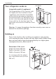 Installation Your refrigerator needs air Integratable models (i-appliances) The integrated door of the furniture cabinet largely seals the installation recess. i-appliances must therefore be provided with ventilation by having an opening in the furniture plinth. The warmed air must be able to be exhausted upwards through the air shaft on the furniture back. The ventilation cross-sections should be at least 200 cm2. min. 200 cm2 50 min.