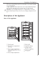 Description of the Appliance Control panel 1 2 3 4 5 6 7 Pilot light (green) ON/OFF switch Temperature setting buttons (for warmer temperatures) Temperature display Temperature setting buttons (for colder temperatures) COOLMATIC indicator light (yellow) Push button for COOLMATIC Temperature setting buttons The temperature is adjusted using the „+“ (WARMER) and „-“ (COLDER) buttons. These buttons are connected to the temperature display.