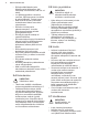 www.electrolux.com vältä pitämästä ovea pitkään auki elintarvikkeisiin kosketuksissa olevat pinnat ja saavutettavissa olevat tyhjennysjärjestelmät tulee puhdistaa säännöllisesti – säilytä raakaa lihaa ja kalaa asianmukaisissa astioissa jääkaapissa, jotta se ei pääsisi kosketuksiin tai ettei siitä valuisi nestettä muihin elintarvikkeisiin. VAROITUS: Pidä kalusteeseen asennetun laitteen syvennyksen tai kalustekaapin ilmanvaihtoaukot esteistä vapaina.