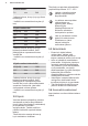 SUOMI 5 cm 9 3.5 Oven kätisyyden vaihtaminen min. 200 cm2 Katso erilliset asennusta ja avautumissuunnan vaihtoa koskevat ohjeet. min. 200 cm2 HUOMIO! Suojaa lattia kestävällä materiaalilla oven avautumissuunnan vaihtamisen aikana. HUOMIO! Lue asennusohjeet asennusta varten. 4. KÄYTTÖPANEELI 1 2 1 2 3 2 4 2 2 5 4.2 Laitteen kytkeminen pois päältä Kosketa ON/OFF-painiketta (6) 3 sekunnin ajan. Kaikki merkkivalot sammuvat. 4.