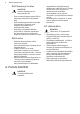 www.electrolux.com • • W urządzeniu nie wolno przechowywać substancji wybuchowych, takich jak puszki aerozoli z łatwopalnym gazem pędnym. Jeśli przewód zasilający uległ uszkodzeniu, należy zlecić jego wymianę producentowi urządzenia, autoryzowanemu centrum serwisowemu lub też innej kompetentnej osobie, aby uniknąć niebezpieczeństwa. 2. WSKAZÓWKI DOTYCZĄCE BEZPIECZEŃSTWA 2.1 Instalacja OSTRZEŻENIE! Urządzenie może zainstalować wyłącznie wykwalifikowana osoba.