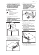 www.electrolux.com 4. Paceliet augšējo pārsegu un novietojiet to uz mīkstas virsmas. 5. Atskrūvējiet 4 skrūves, kuras stiprina augšējo eņģi. Nolieciet augšējo eņģi drošā vietā kopā ar skrūvēm. 1. Sasveriet ierīci uzmanīgi uz mīksta putu iepakojuma vai līdzīga materiāla, lai izvairītos no ierīces aizmugures vai grīdas sabojāšanas. 2. Atrodiet atveri apakšējās pamatnes pārsegā un ievietojiet skrūvi gumijas balstpaliktnī. 3. Pieskrūvējiet to pie pamatnes pārsega ar krustiņskrūvgriezi. 3.