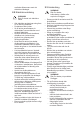 www.electrolux.com • • • • • • • • • • VARNING: Produkten och åtkomliga delar blir mycket varma under användning. Var försiktig så att du undviker att vidröra värmeelementen. Använd alltid ugnsvantar för att ta ut eller sätta in tillbehör eller eldfasta formar. Innan du utför något underhåll ska du koppla ur produkten från nätuttaget. Kontrollera att produkten är avstängd innan du byter lampa för att undvika risken för elstötar. Använd inte ångrengörare vid rengöring av produkten.