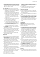 electrolux Put together the appliance door and the furniture door and mark the holes. Align the kitchen furniture door and the appliance door by adjusting the part Hb. 8 mm Ha Hb Hb 12. Remove the brackets and mark a distance of 8 mm from the outer edge of the door where the nail must be fitted (K). 14. Press the part Hd on the part Hb. 8 mm Hb K Ha 13. Place the small square on the guide again and fix it with the screws supplied.