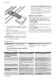 electrolux 9 Problem Possible cause Solution The product temperature is too high. Let the product temperature decrease to room temperature before storage. The room temperature is too high. Decrease the room temperature. Water flows on the rear plate of the refrigerator. During the automatic defrosting process, frost defrosts on the rear plate. This is correct. Water flows into the refrigerator. The water outlet is clogged. Clean the water outlet.
