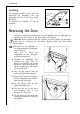 Installation Levelling The appliance must be level. Level the appliance by adjusting the two adjustable feet (1) at the front of the appliance. If required the washer (2) can be removed. Reversing the Door The side at which the door opens can be changed from the right side (as supplied) to the left side, if the installation site requires. Warning! When changing the side at which the door opens, the appliance must not be connected to the mains. Remove plug from the mains beforehand.