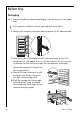 Before Use Packaging 0 1. Remove all adhesive tape and packaging from the interior of the appli- ance. 3 Any remnants of adhesive can be removed with white spirit. 2. Remove the transport protection pieces and pull off the adhesive tape. 3. Wash the inside of the appliance with lukewarm water with a little bicarbonate of soda added (5 ml to 0.5 litre of water). Do not use soap or detergent as the smell may linger. Dry the appliance thoroughly. Remove the transport fittings from the storage shelves: 4.
