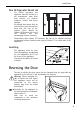Installation Unscrew the adjustable feet situated on both sides (2 pieces), in addition the screws fixing the lower door holders (3 pieces) respectively the screw on the other side. Take off the freezer door by pulling it slightly downwards. Unscrew the top door hinge pin of the refrigerator then screw it back on the other side. Fit the freezer door on the upper door hinge pin. Put over the pin in the lower door holding plate in the direction of the arrow.