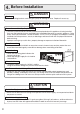 4. Before Installation DANGER Checkup r $IFDL UIF àYJOH CSBDLFUT BOE WFOU QJQF ZFBSMZ GPS EBNBHF PS XFBS 3FQMBDF JG OFDFTTBSZ WARNING Precautions on Vent Pipe Replacement r 5IF WFOU TZTUFN XJMM BMNPTU DFSUBJOMZ OFFE UP CF SFQMBDFE XIFO UIJT BQQMJBODF JT CFJOH JOTUBMMFE 0OMZ VTF WFOU NBUFSJBMT UIBU BSF TQFDJàFE JO UIJT *OTUBMMBUJPO .