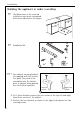 Installation Building the appliance in under a worktop ☞ The dimensions of the recessed installation area must correspond with those indicated in the figure. 60 0 5 min50 . 600 ☞ 1xB 2xC Installation kit 1xA 12 2 1 2 1 2 1 cabinet securing brackets ☞1. Two are supplied with the installation pack. They need to be assembled onto the cabinet prior to cabinet being pushed into the Kitchen aperture. Left hand bracket Right hand bracket 1/a 2.