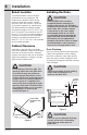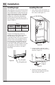 Installation Leveling Legs Leveling the unit Adjustable legs at the front and rear corners of the appliance should be set so the unit is firmly positioned on the floor and level from side-to-side and front-to-back. The overall height of your appliance may be adjusted to higher (by turning the leveling leg out, counter clockwise) and lower (by turning the leveling leg in, clockwise) dimensions as shown in Table "A". 1 Table A Models Minimum Height Maximum Height UR15IM20RS UL15IM20RS 33 5⁄8" (85.
