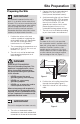 Site Preparation Preparing the Site IMPORTANT It is extremely important that the unit is level. If it is not level, the ice mold will not fill evenly. This can cause a reduction in ice rate, uneven sized cubes or water spilling into the storage area which will cause the ice in the bin to melt pre-maturely. Remember that floors near drains have a tendency to slope towards the drain. 1 2 3 Position the unit on a flat, level surface, capable of supporting the entire weight of the unit.