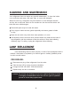 C L E A N I N G 1. Before cleaning the refrigerator, you should always unplug it from the outlet and remove all food. 2. Clean the external surfaces of the unit using only a damp cloth to wipe away dust and dirt. Never use acids, thinner, gasoline, acetone nor benzene in cleaning and removing stains. 3. Wash internal accessories using a mild detergent solution and dry it with a soft towel. 4. To remove odors from your unit, combine skin of a lemon and warm.