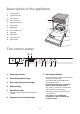 Description of the appliance 1. Levelling spacers 2. Upper basket stop 3. Salt container 4. Lower spray arm 1 12 2 5. Detergent dispenser 6. Control panel 7. Rating plate 3 8. Rinse aid dispenser 4 10 9. Large filter 5 9 11 10. Central filter 8 11. Upper spray arm 7 12. Upper basket 6 IN86 The control panel 3 4 1 2 5 1. On/Off push button 2. Salt refilling indicator light 3. Rinse aid refilling indicator light 4. Digital display 5. SID indicator light 6 7 7.