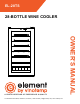 PARTS AND SPECIFICATIONS Model EL-28TS Zone Type 1 Temp. Zone Bottle Capacity Approx. 28 bottles Rated Voltage 120V Rated Frequency 60Hz Rated Power 85W Ambient Temp Range 50 - 90°F (10 - 32°C) Control Temp Range 39 - 65°F (4 - 18°C) Cooling System R600a/1.058 oz. compressor Power Consumption 0.85 kWh/24h Net Weight 56.2 lbs. Dimensions (W x D x H) 16.9 x 18.9 x 32.6 in (43 x 48 x 83 cm) *Note: This wine cooler is designed to store up to 28 standard Bordeaux 750 ml bottles.