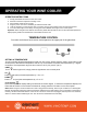 OPERATING YOUR WINE COOLER OPERATING INSTRUCTIONS 1. 2. 3. 4. 5. 6. Gently place/slide the racks into the wine cooler. Determine the best temperature setting to use. Place bottles inside the wine cooler. Plug the power cord into a standard grounded electrical outlet. Limit the frequency of opening the door to conserve energy and maintain proper storage temperature. Turn the interior light on and off by touching the button labeled with a light on the control panel.