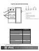 PARTS AND SPECIFICATIONS 1 Shelves 2 Model No. EL-BCU101-01 Voltage AC 115V Frequency 60 Hz Ambient Temperature Range 60.8°- 89.6°F Control Temperature Range 36°- 68°F Refrigerant R600a/24g Power Consumption Input Power 0.88 kWh/24h 75W Volume 4.45 in cu/ft Net Weight 75 lbs Gross Weight 95 lbs Dimensions (W x D x H) 19.75 in x 21.5 in x 33.87 in Box Dimensions (W x D x H) 25.63 in x 27.78 in x 36.5 in *Note: EL-BCU101-01 storage capacity is based on a standard 330ml cans.