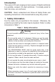 Table 1. Safety Information (continued) ! Warning • When servicing the meter, use only specified replacement parts. • Use caution when working above 30VAC rms, 42V peak, or 60VDC. Such voltages pose a shock hazard. • Avoid working alone. • When using the probes, keep your fingers behind the finger guards on the probes. • Connect the common test lead before you connect the live test lead. When you disconnect test leads, disconnect the live test lead first.