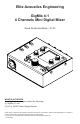 Elite Acoustics Engineering GigMix 4-1 4 Channels Mini Digital Mixer Quick Guide Handbook - V1.02 WHAT IS IN THE BOX Your GigMix 4-1 package contains the following: (1) GigMix 4-1 unit (1) AC to 12VDC Power Supply Adapter NOTE: Due to continuous development and improvements of our products, features and specifications are subject to change without notice. All weights and measures are approximate. For a copy of the complete User’s Manual, please visit: www.eliteacoustics.