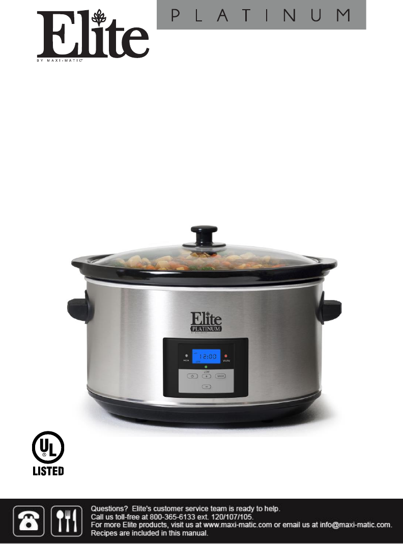 8.5QT. PROGRAMMABLE STAINLESS STEEL SLOW COOKER OLLA DE COCIMIENTO LENTO 8.5 LITROS DE CAPACIDAD Model: MST-900D INSTRUCTION MANUAL Before operating your new appliance, please read all instructions carefully and keep for future reference. www.maxi-matic.com info@maxi-matic.