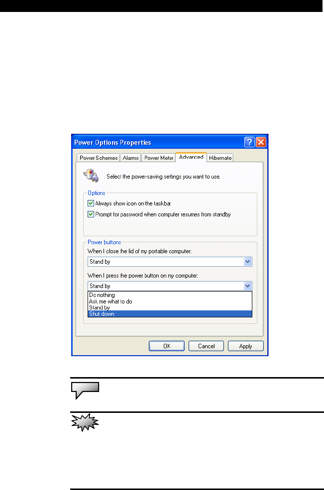 The notebook PC’s power button can be set to turn off