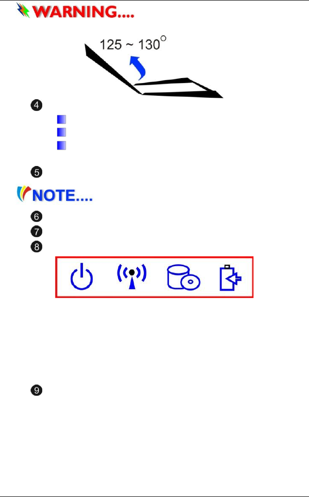 a maximum opening of 125-130 degrees, please do not push it forcibly.