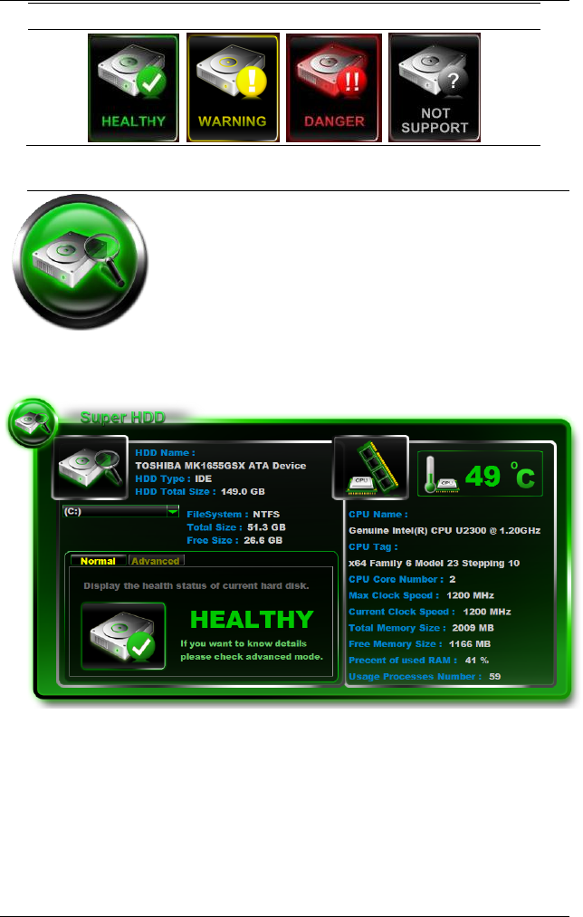 Information of main HDD: Name, Type, Partitions and Total Size.