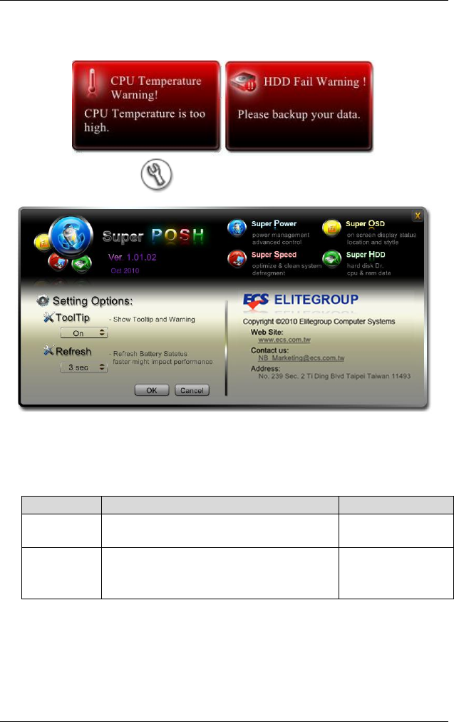 If the status of HDD and CPU is Danger, a warning window will pop up on