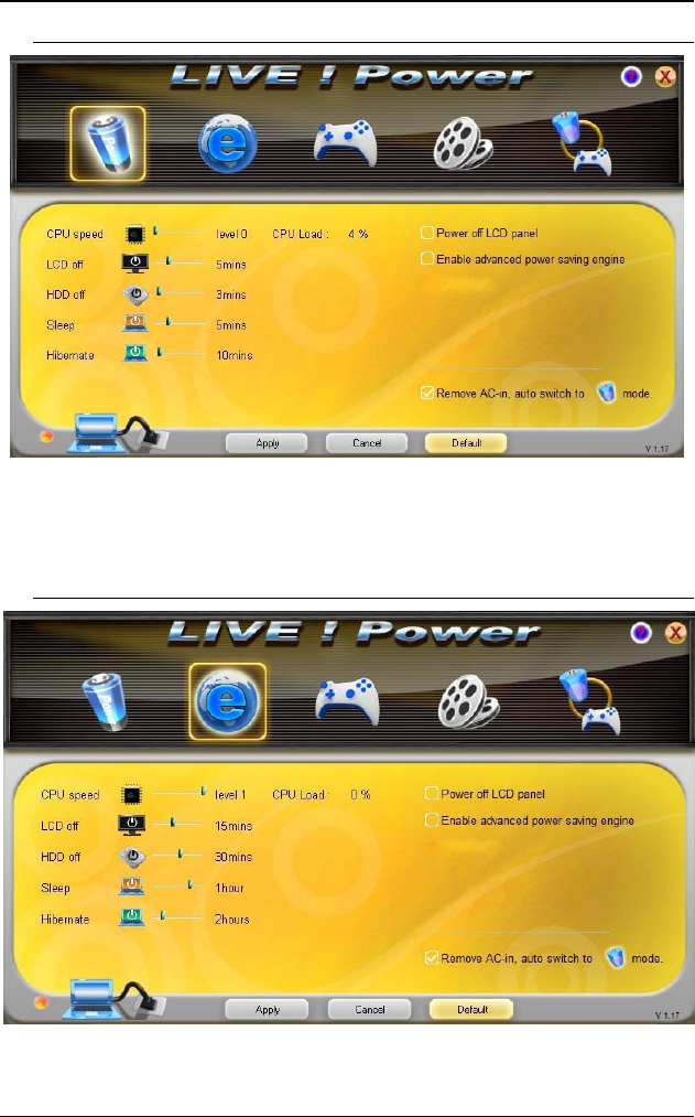 LCD Brightness: Level 5 HDD Off: Idle after 30 minutes