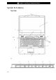 ■ chapter 1 getting to know the basics B B 1. LCD Latch The LCD latches lock / unlock the LCD panel. 2. LCD Display The panel is where the system content is displayed. 3. Keyboard The keyboard is used to enter data. It has an embedded numeric keypad and cursor control keys. (See Keyboard Section for details.) 4. Touch Pad The touch pad is a built-in pointing device with functions similar to a mouse. 5. Built-in Microphone The built-in microphone records sound. 6.
