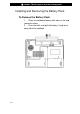 ■ chapter 3 battery power & power management Installing and Removing the Battery Pack To Remove the Battery Pack: 1. Place the notebook bottom-side up on a flat and secured surface. 2. Push the latch and pull the battery’s hard case away from the notebook.