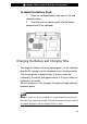 ■ chapter 3 battery power & power management To Install the Battery Pack: 1. Place the notebook bottom-side up on a flat and secured surface. 2. Carefully insert the battery pack into the battery compartment of the notebook. Charging the Battery and Charging Time To charge the battery, while the battery pack is in the notebook, plug the AC adapter into the notebook and an electrical outlet.