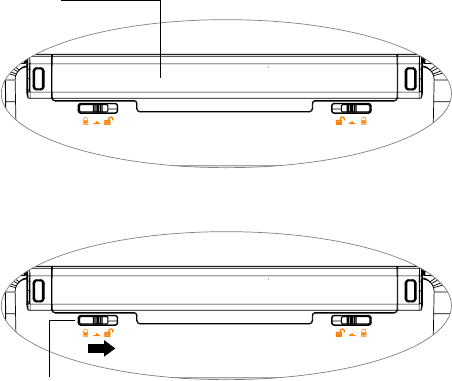 2. Slide “Battery retainer A” to the right to unlock the battery.