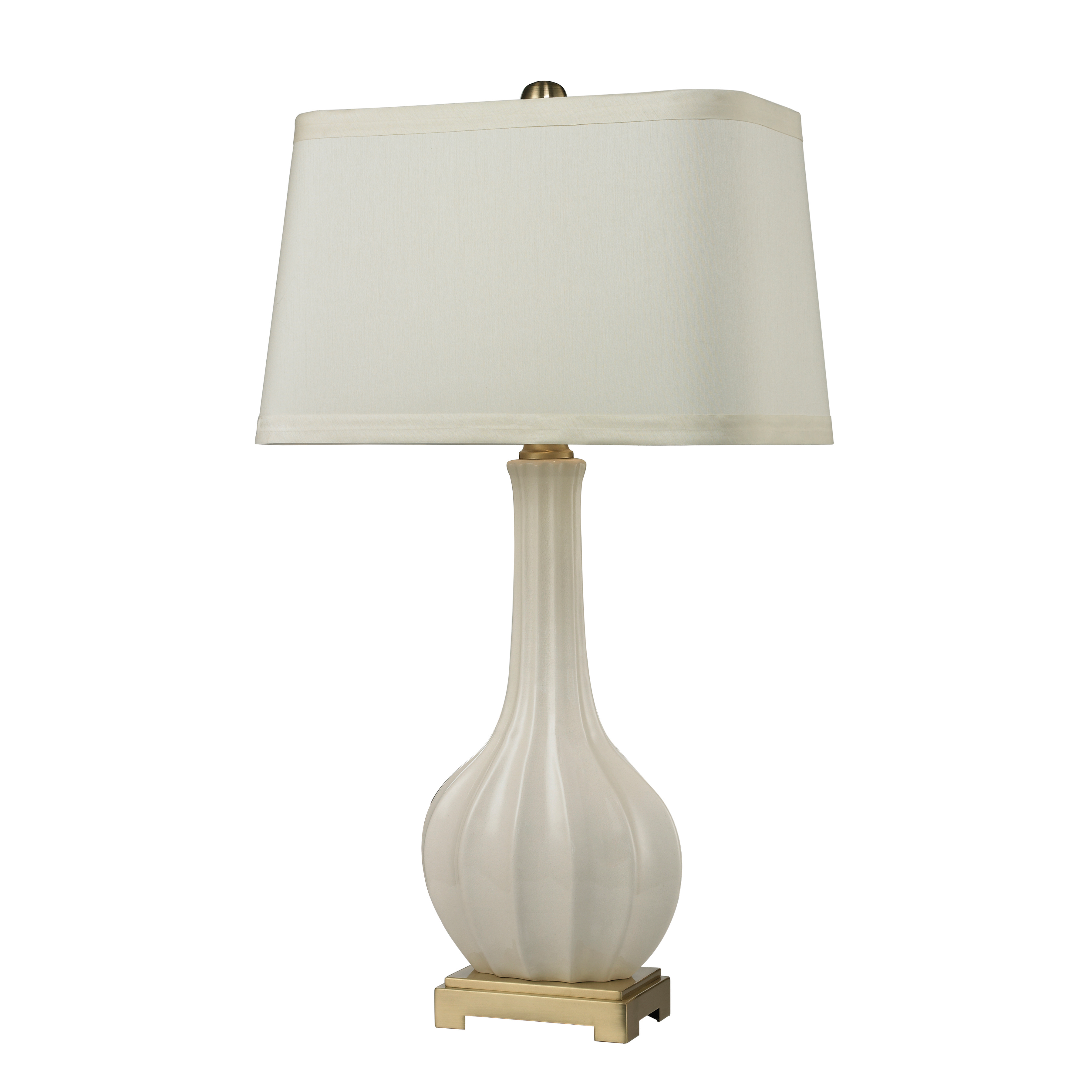 Finished With A Hardback Shade In A Crisp Cream Faux Silk