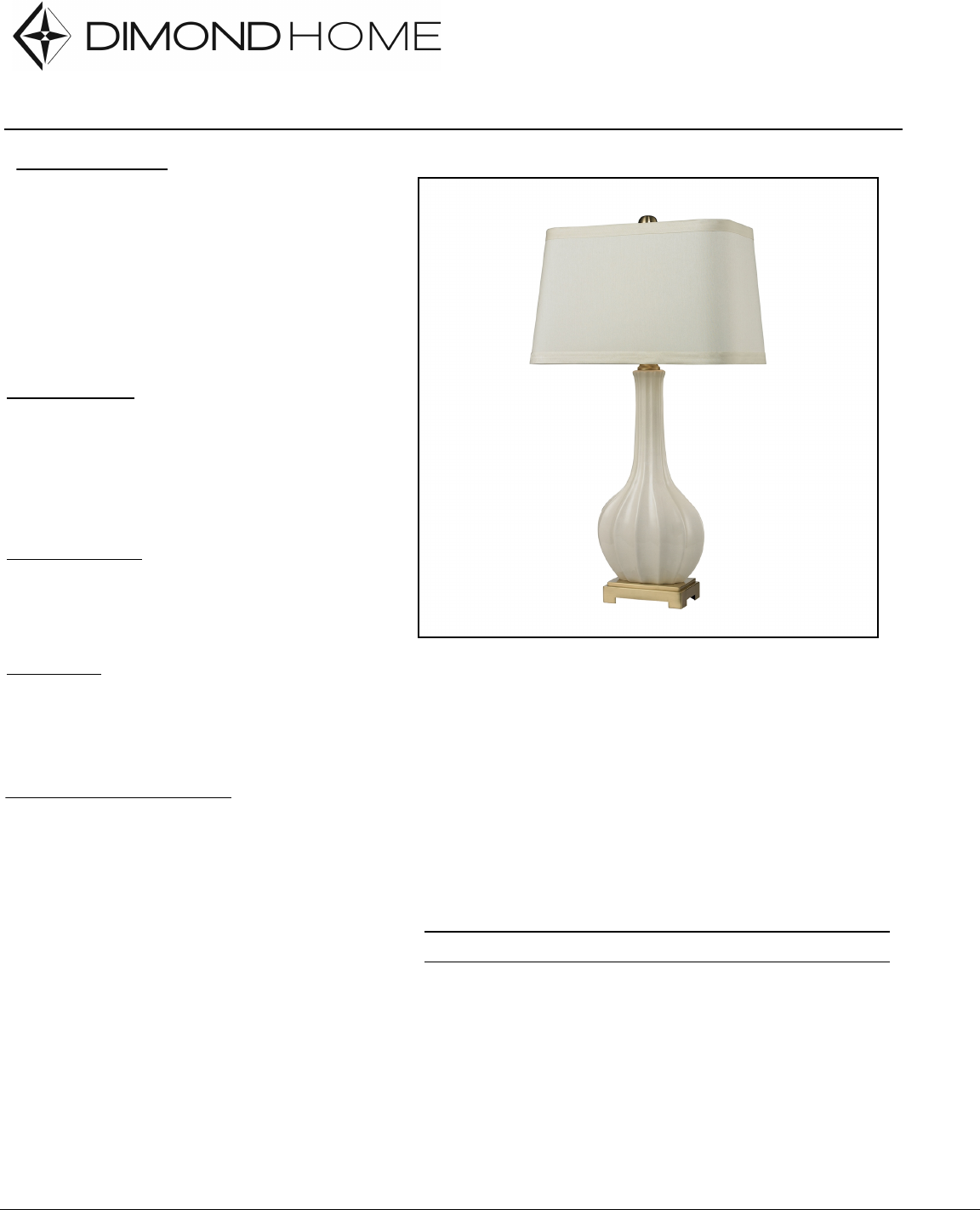 Body And Accented With An Antique Brass Base. The Lamp Is