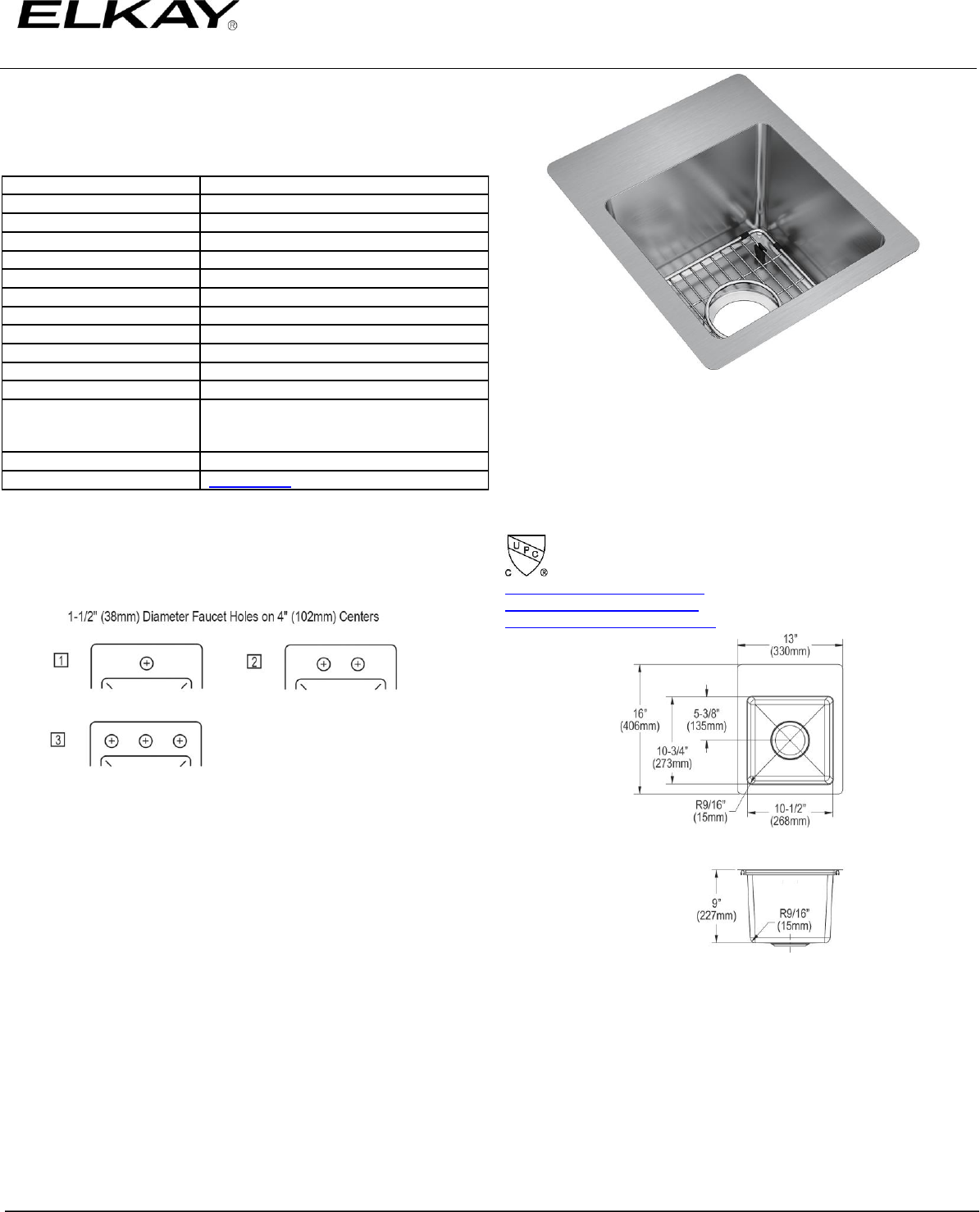 for the most current version of Elkay product specification sheets. This specification describes an Elkay product with design, quality, and functional benefits to the