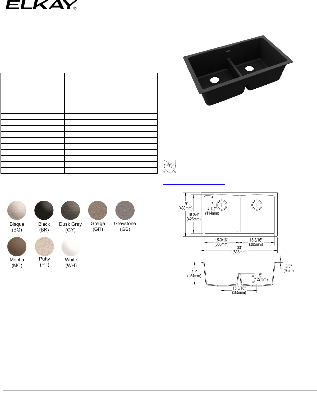 for the most current version of Elkay product specification sheets. This specification describes an Elkay product with design, quality, and functional benefits to the