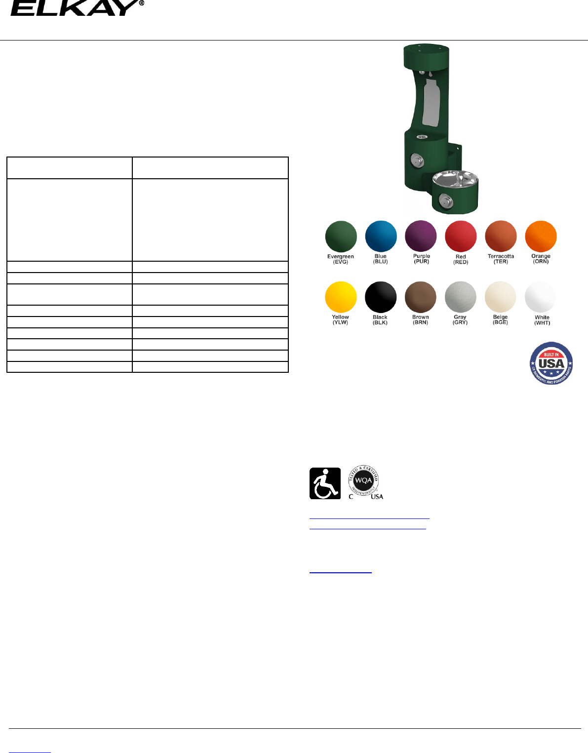 the most current version of Elkay product specification sheets. This specification describes an Elkay product with design, quality, and functional benefits to the user.