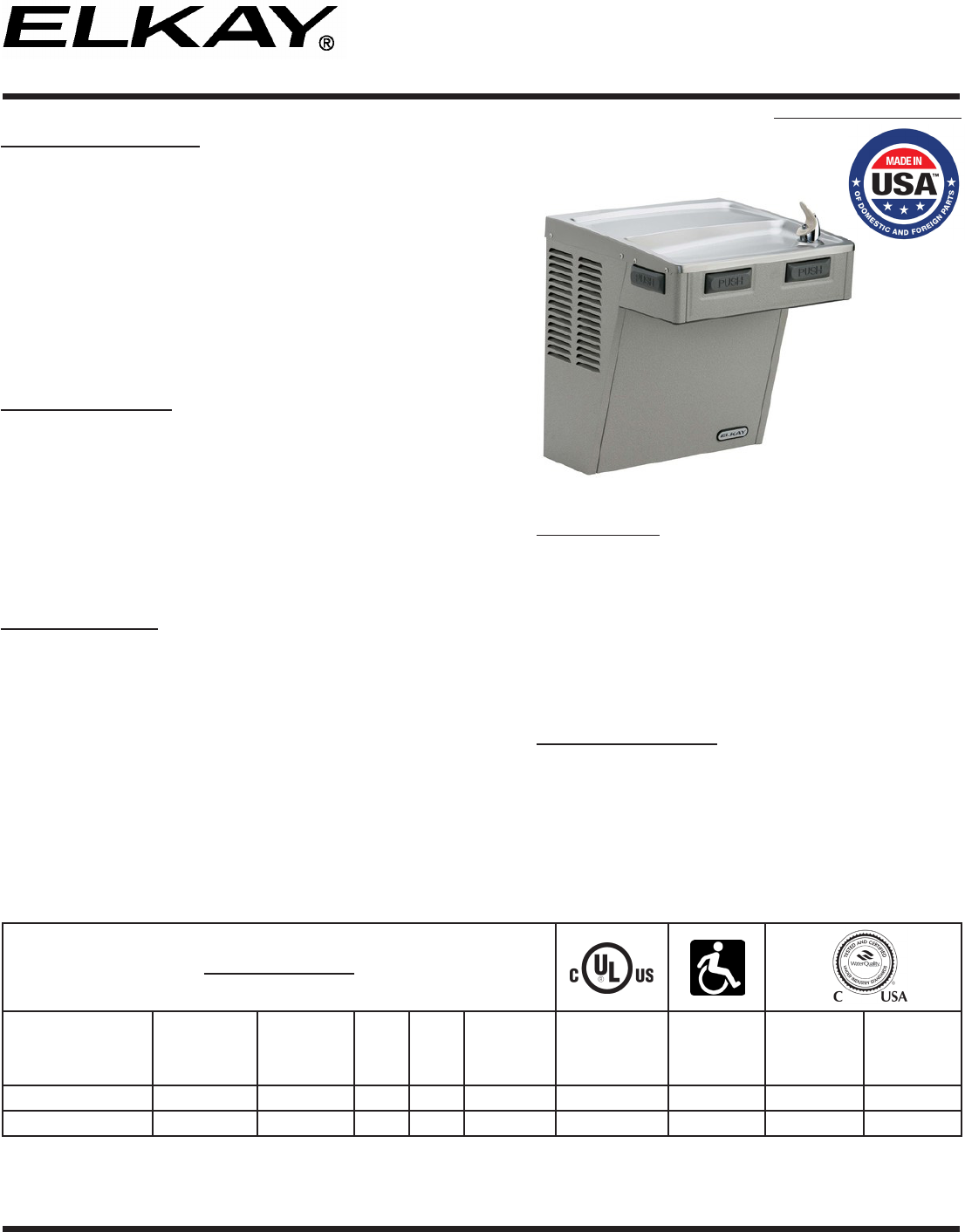 This specication describes an Elkay product with design, quality and functional