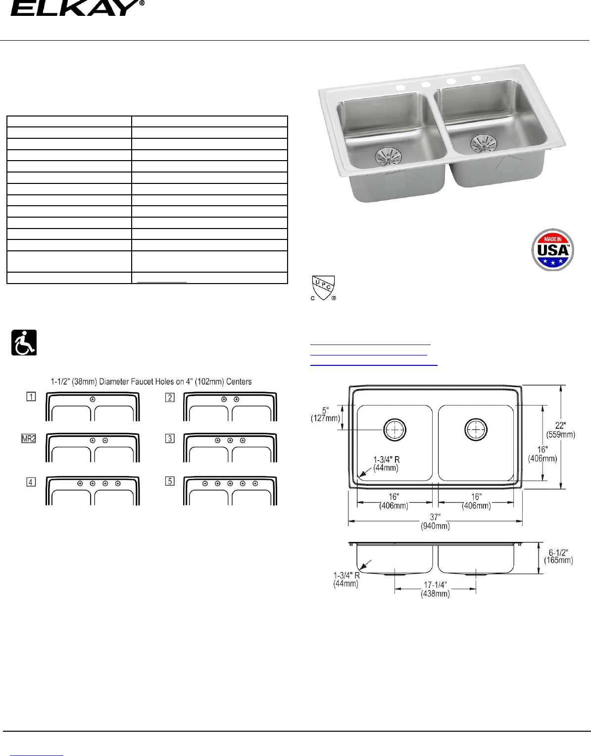 for the most current version of Elkay product specification sheets. This specification describes an Elkay product with design, quality, and functional benefits to the