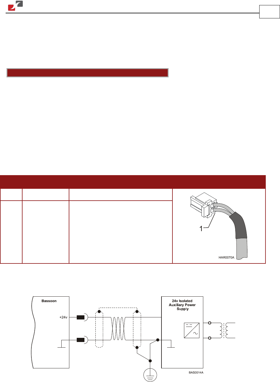 Connect the auxiliary power supply to the J4 port on the front of the Bassoon, using a
