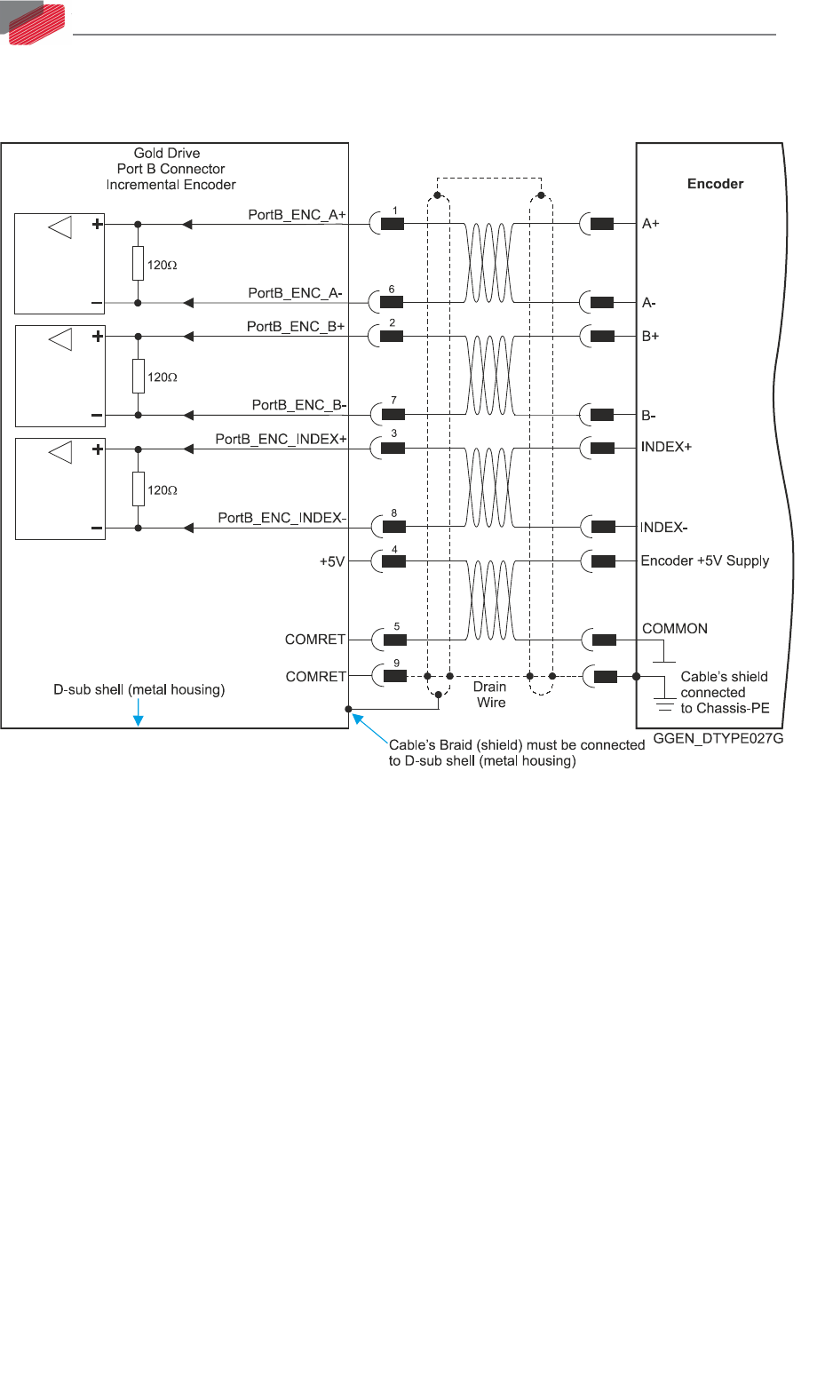 Figure 20: Port B Incremental Encoder Input Recommended D-Type Connection Diagram