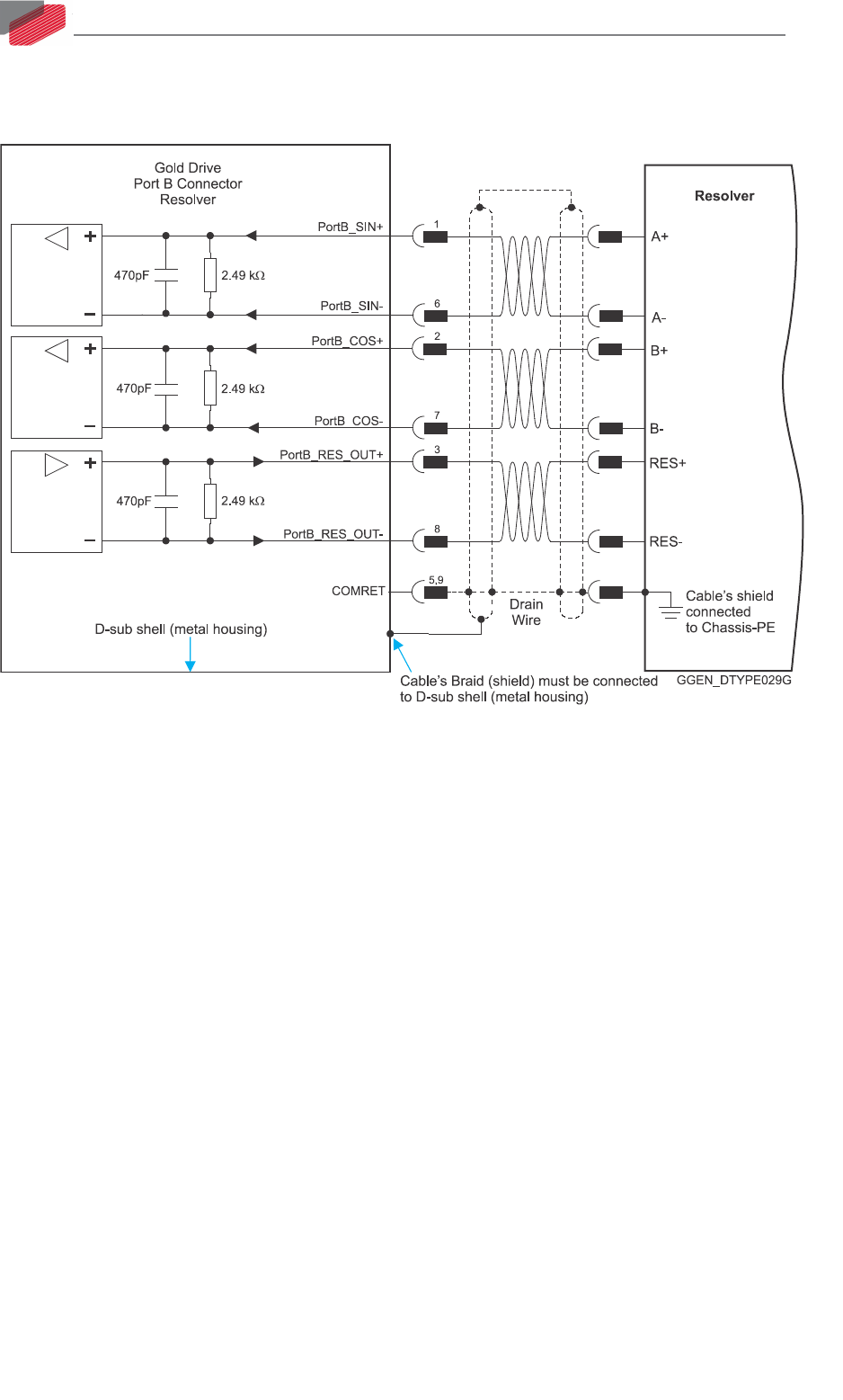 Figure 22: Port B Resolver D-Type Connection Diagram