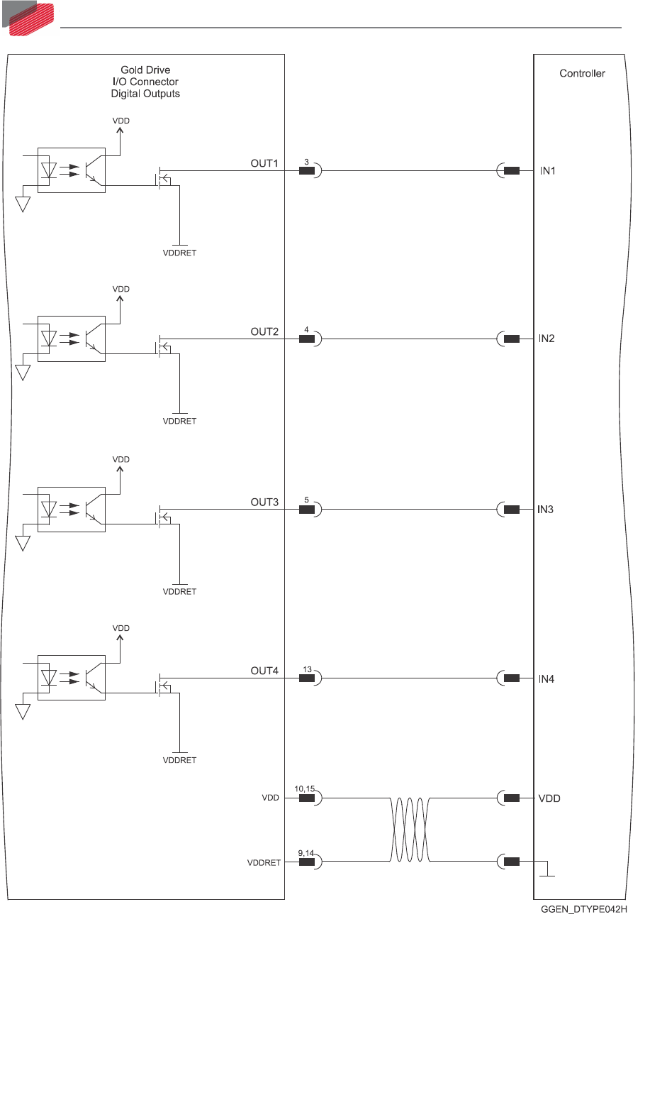 Figure 33: Digital Output as Sink Configuration D-Type Connection Diagram