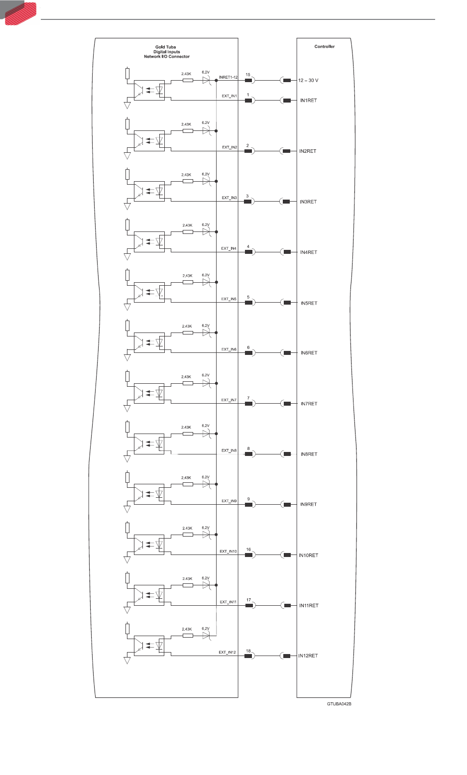 Figure 37: Network I/O Digital Input H Mode Connection Diagram - G-TUBXXX/YYYXXHEX
