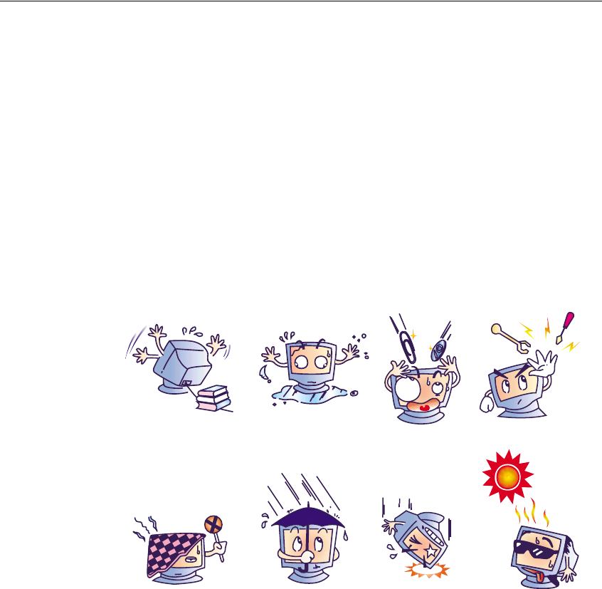 • Avoid getting liquids inside your touchmonitor. If liquid does get inside,