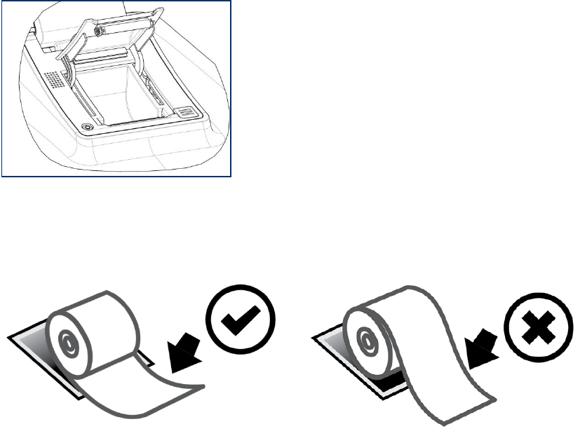 4. Take out the roll of used printer paper, and replace with new roll of printer paper. Make sure that the paper is placed and positions