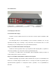 3、Vul het rek altijd van onder naar boven; 4、Overweeg om het rek te voorzien van een beveiliging tegen overbelasting van de circuits wanneer meerdere apparaten in het rek worden gemonteerd. 2.3 Voorpaneel (1) Indicatielampje aan/uit (2) Ontvangstindicator afstand (3) ESC (4) pijltjestoetsen (5) IR Functies van de toetsen op het voorpaneel Nr.